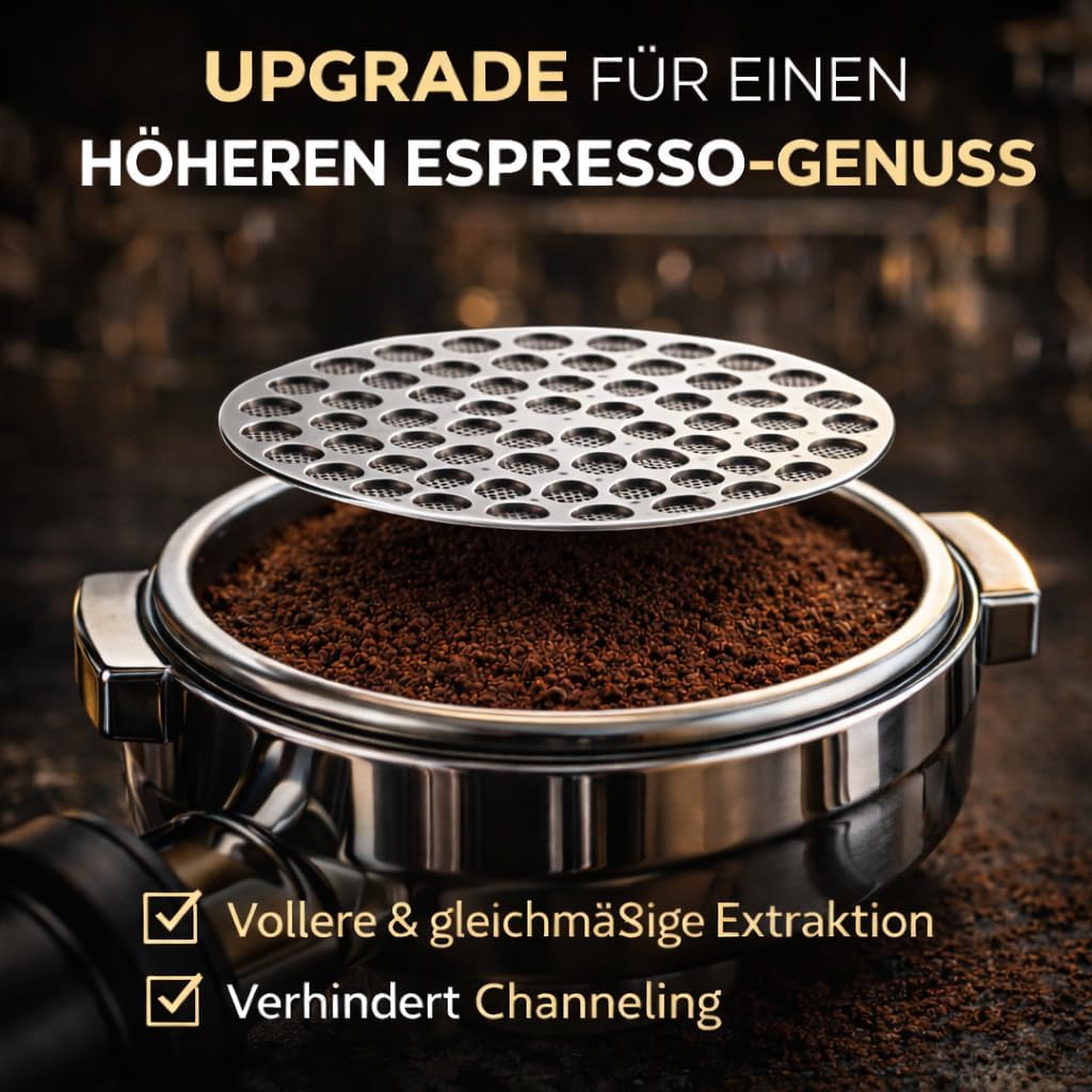 - ✅ PERFEKTE EXTRAKTION: Die präzise Laserlochung sorgt für eine gleichmäßige Verteilung des Brühwassers über den gesamten Kaffeepuck – keine Überextraktion, kein Channeling und ein konstanter, vollmundiger Espressogeschmack.