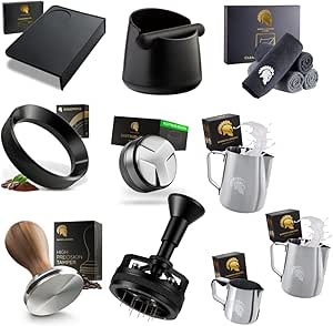 - ✅ XL BARISTA KOMPLETTSET: Enthält alles, was du für die perfekte Espresso-Zubereitung brauchst – Tamper, Tampermatte, Distribution Tool, Milchkännchen, Abschlagbehälter und Barista Lappen.