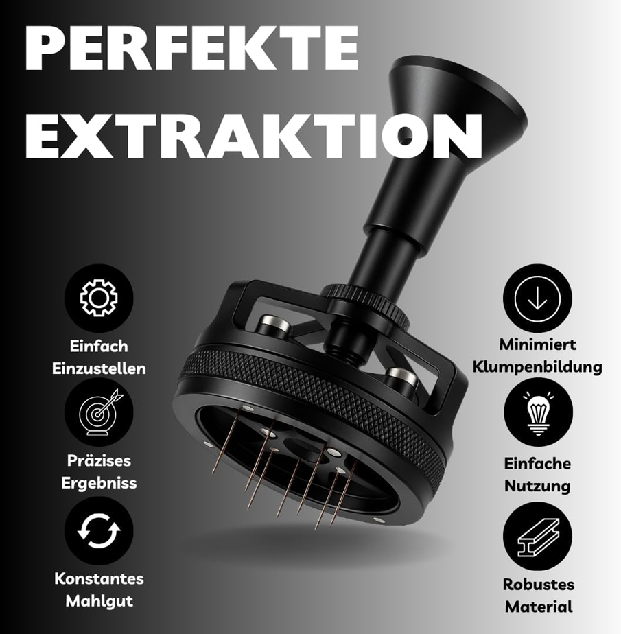 - ✅ PERFEKTE EXTRAKTION: Durch Tamper, Distributor & Dosierring wird dein Kaffeemehl optimal verteilt und verdichtet – für gleichmäßige Extraktion, stabile Crema & intensiven Geschmack.